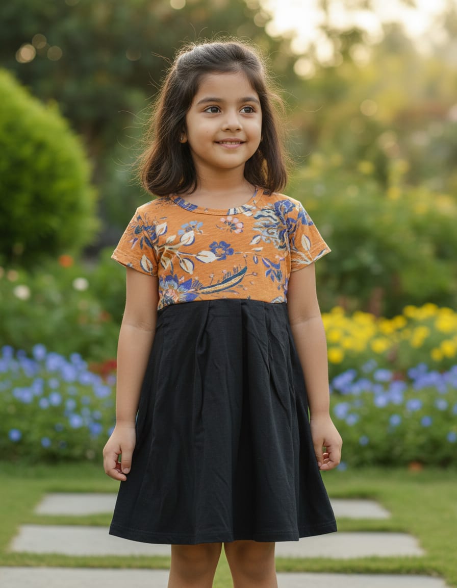 Kids Frocks – Orange with Black