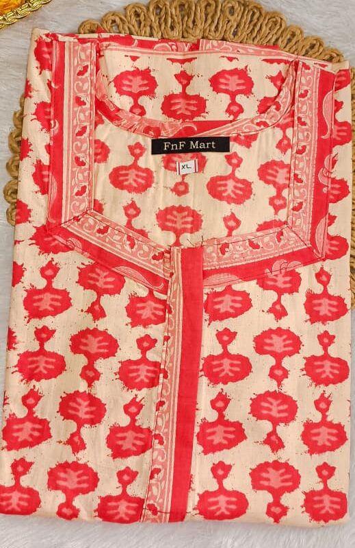 Jaipur Soft Cotton Nighty - Skin & Red